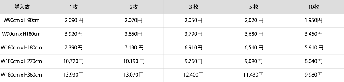 ※表示価格は全て税込価格、1枚あたりの単価となります。
